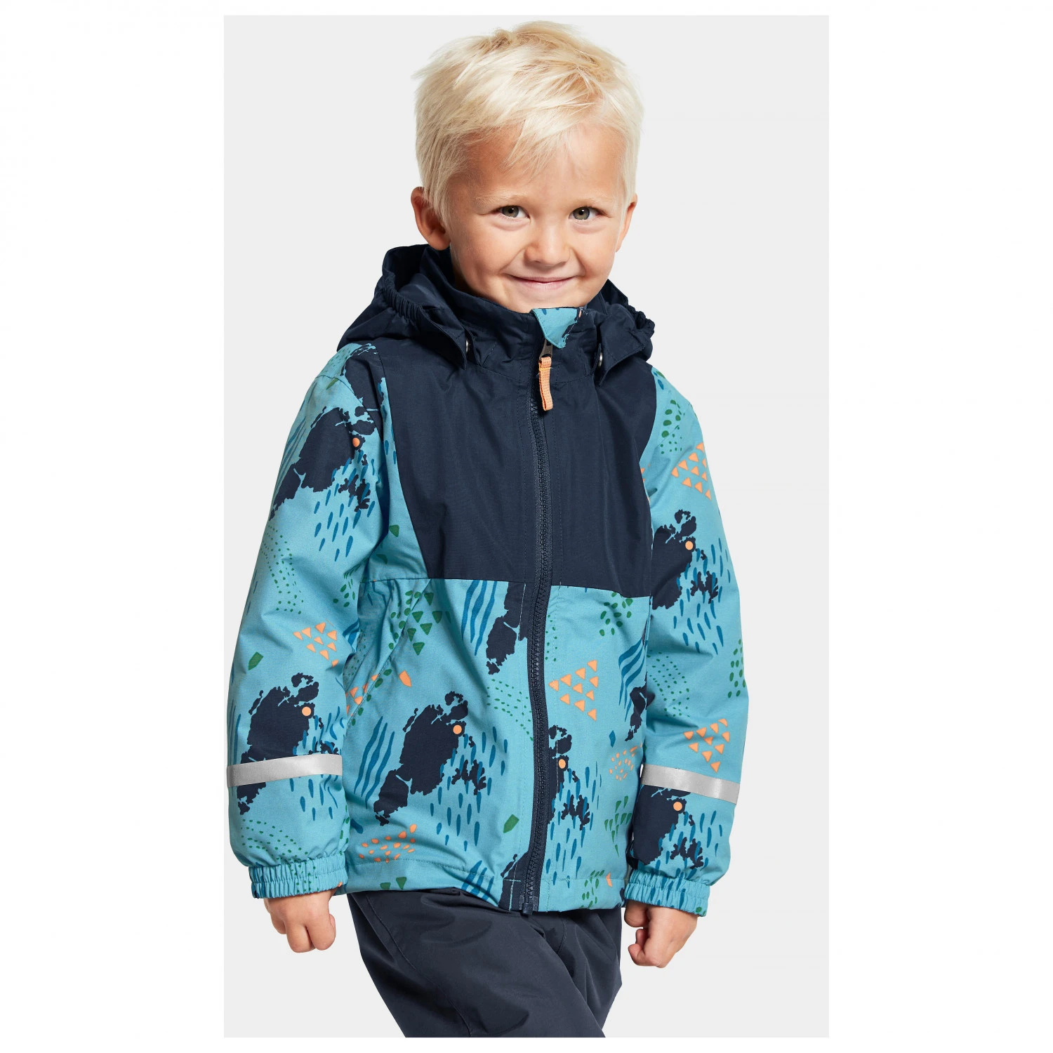 Zuverlässigen Wetterschutz liefert die Regenjacke Kid’s Stormhatt Printed Jacket von Didriksons!
